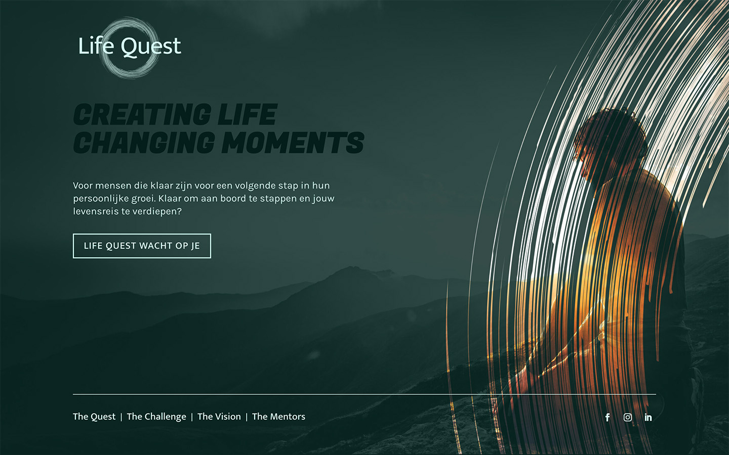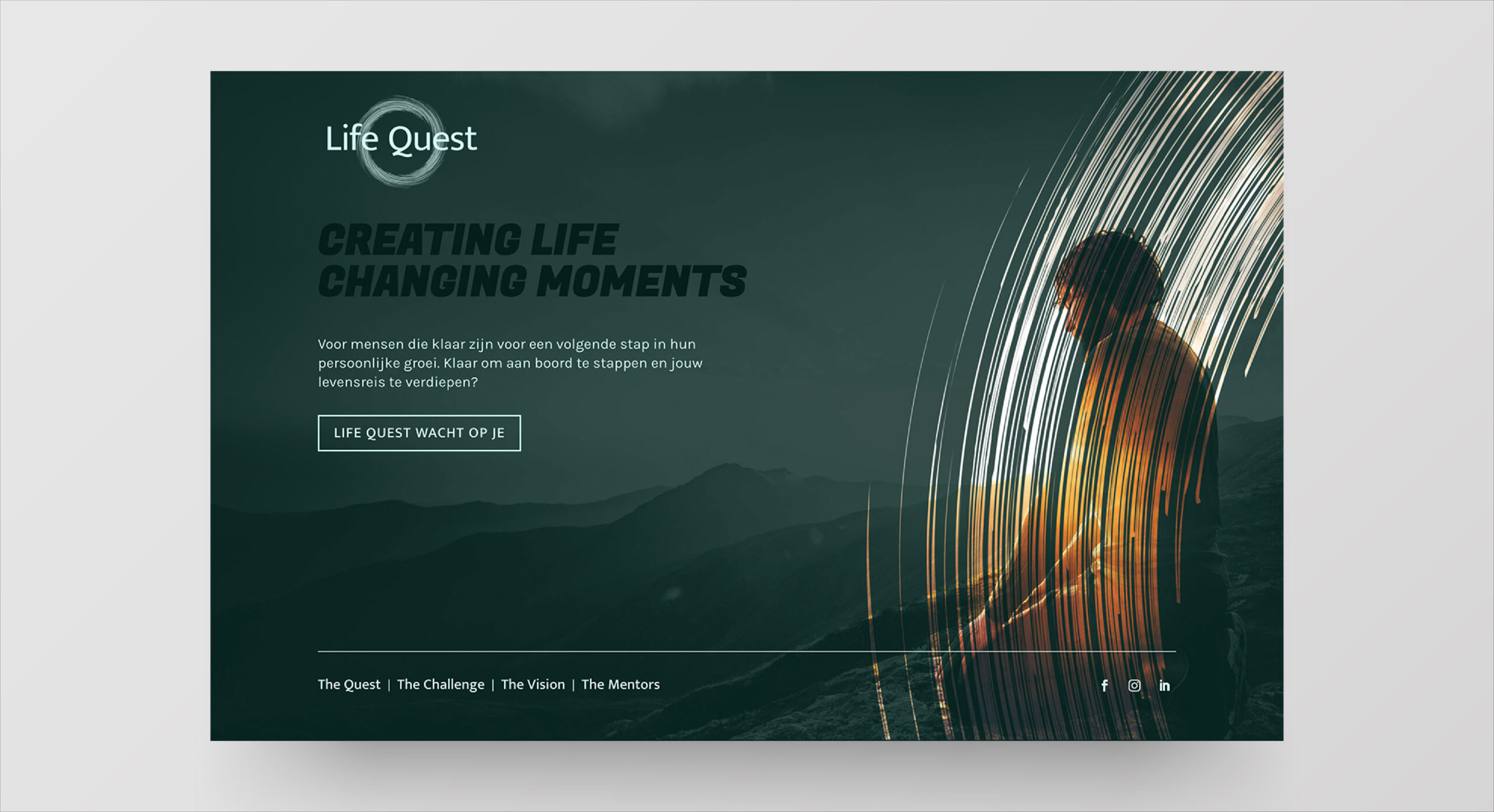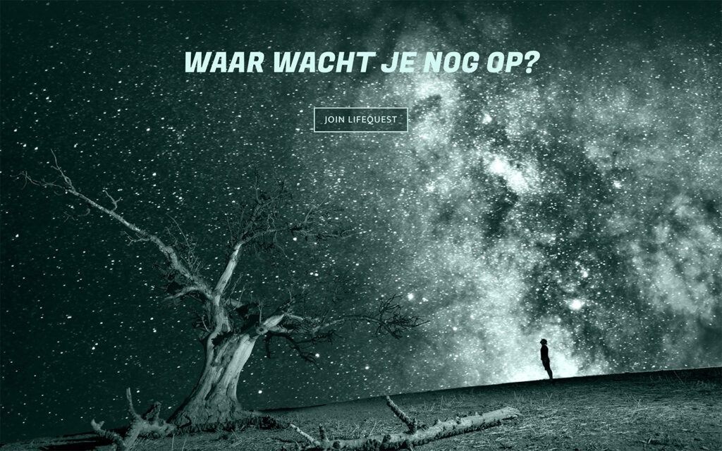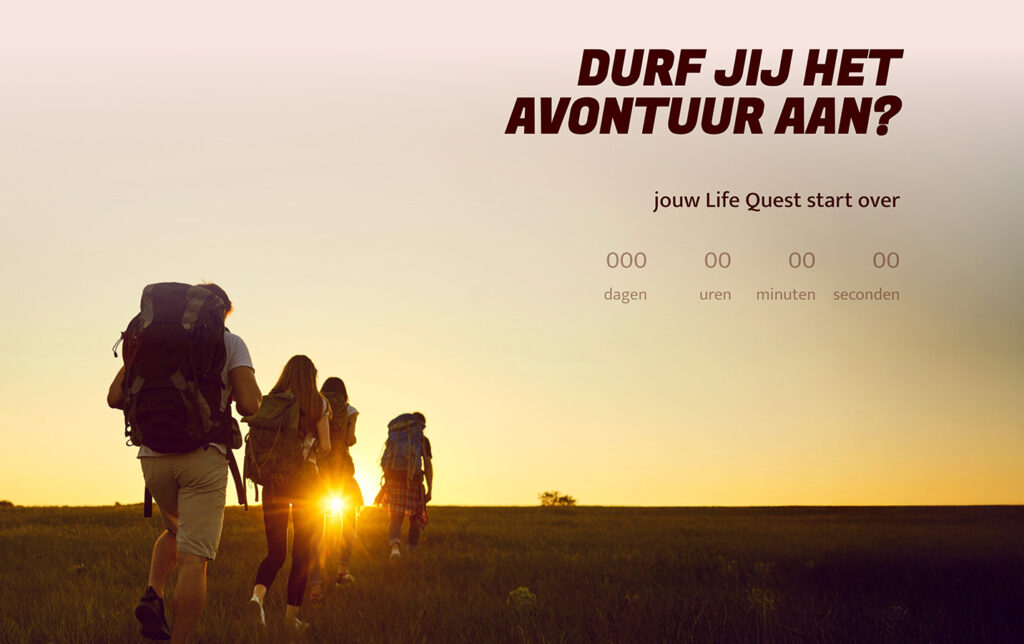 Voor Life Quest kreeg Beeldbreed de opdracht om een visuele identiteit te creëren die de kern van hun missie uitdraagt: mensen begeleiden op hun persoonlijke zoektocht naar groei, balans en betekenis. De briefing vroeg om een stijl die avontuur en bezinning samenbrengt, met een spirituele ondertoon maar tegelijk toegankelijk en uitnodigend blijft.